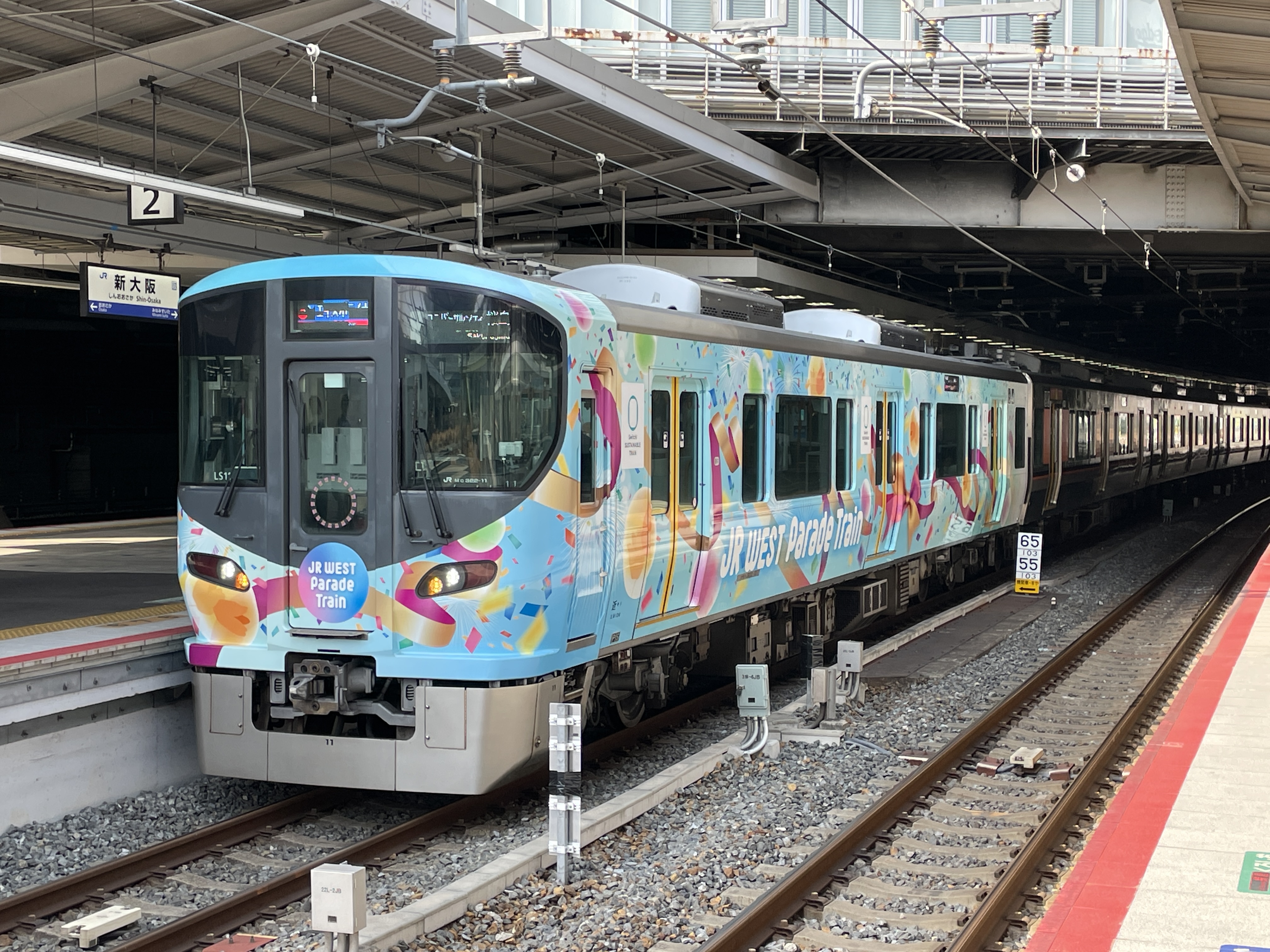▼JRで万博へ向かうならば、07:30発の桜島行エキスポライナーが乗り継ぎに便利です。