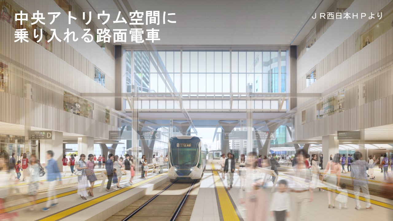▼2025年8月3日に広島電鉄の駅前大橋ルートが開業し、広電の路面電車が広島駅の新駅ビルに乗り入れすることとなるためです。路面電車の駅ビルへの乗り入れは日本初だそうです。