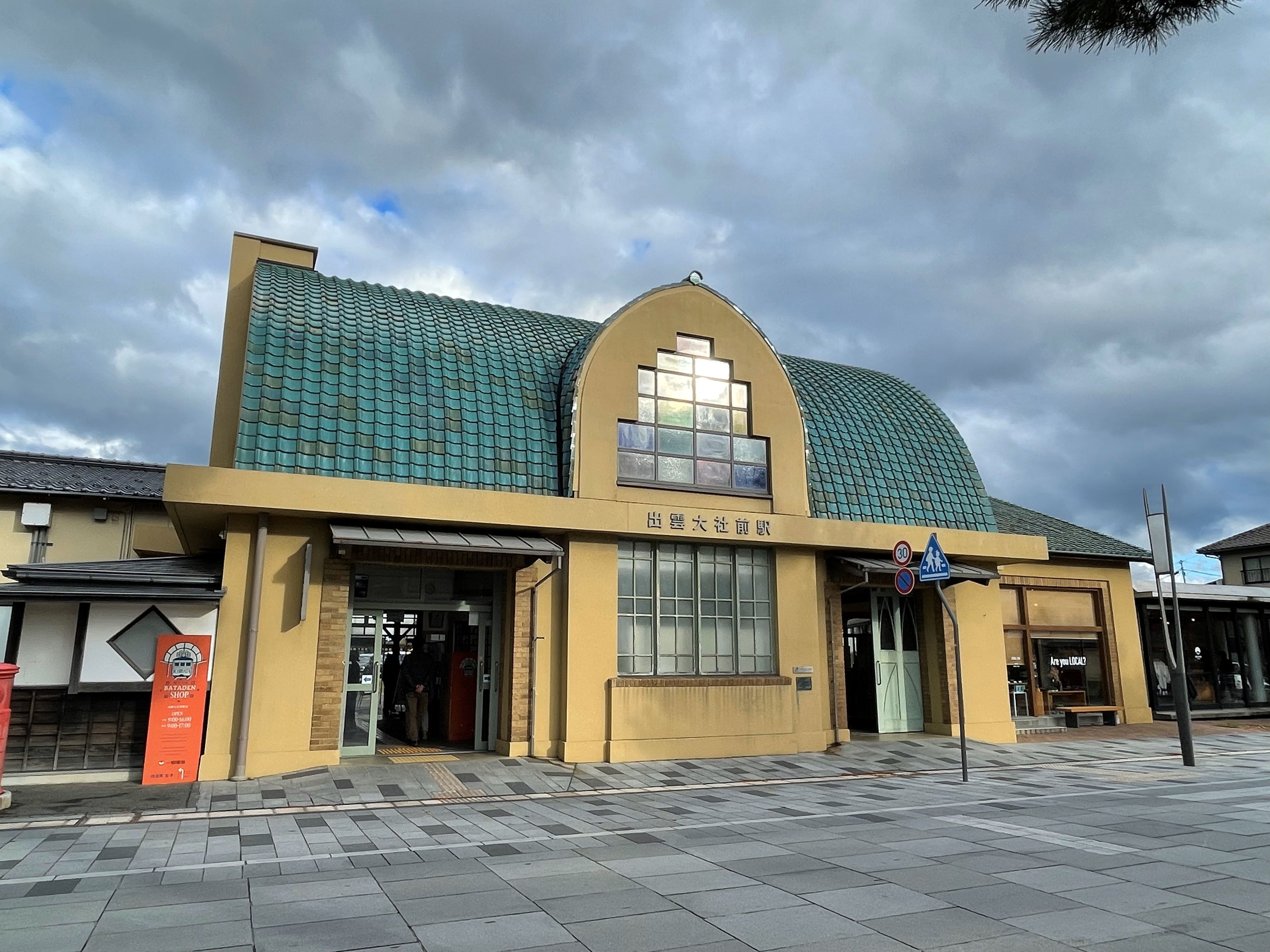 ▼一日目は早めに出雲大社に到着しましたが、参拝は午前中がいいので、二日目にすることにして、門前町の神門通りにある出雲大社前駅に行ってみました。
