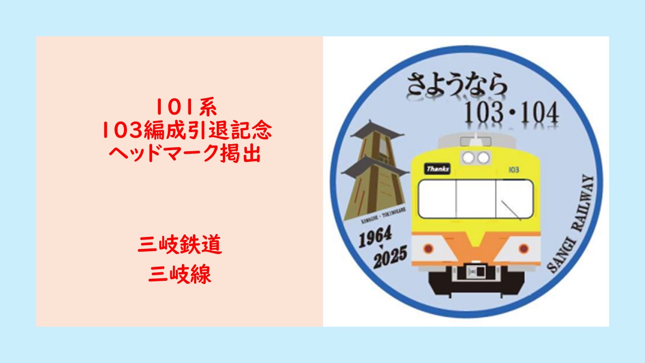 ▼三岐鉄道三岐線の101系103編成が引退することになり、引退記念としてヘッドマークの掲出や硬券の一日乗車券の発売について、9月26日に同鉄道から発表がありました。