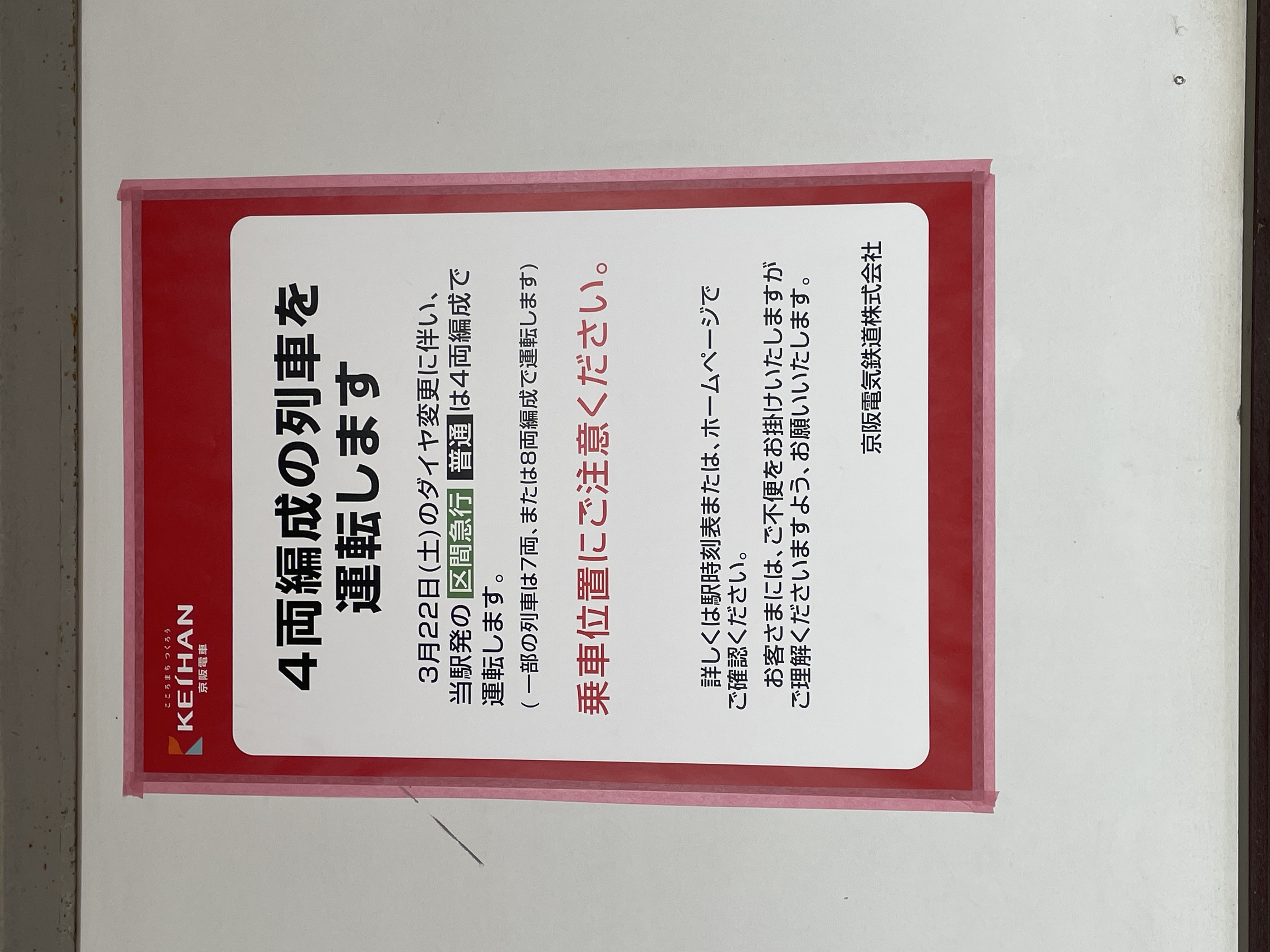 ▼京阪電鉄では、3月22日にダイヤ改正を実施しました。今回は「普通」の4両編成化について、実際に乗車して実情をみてきました。