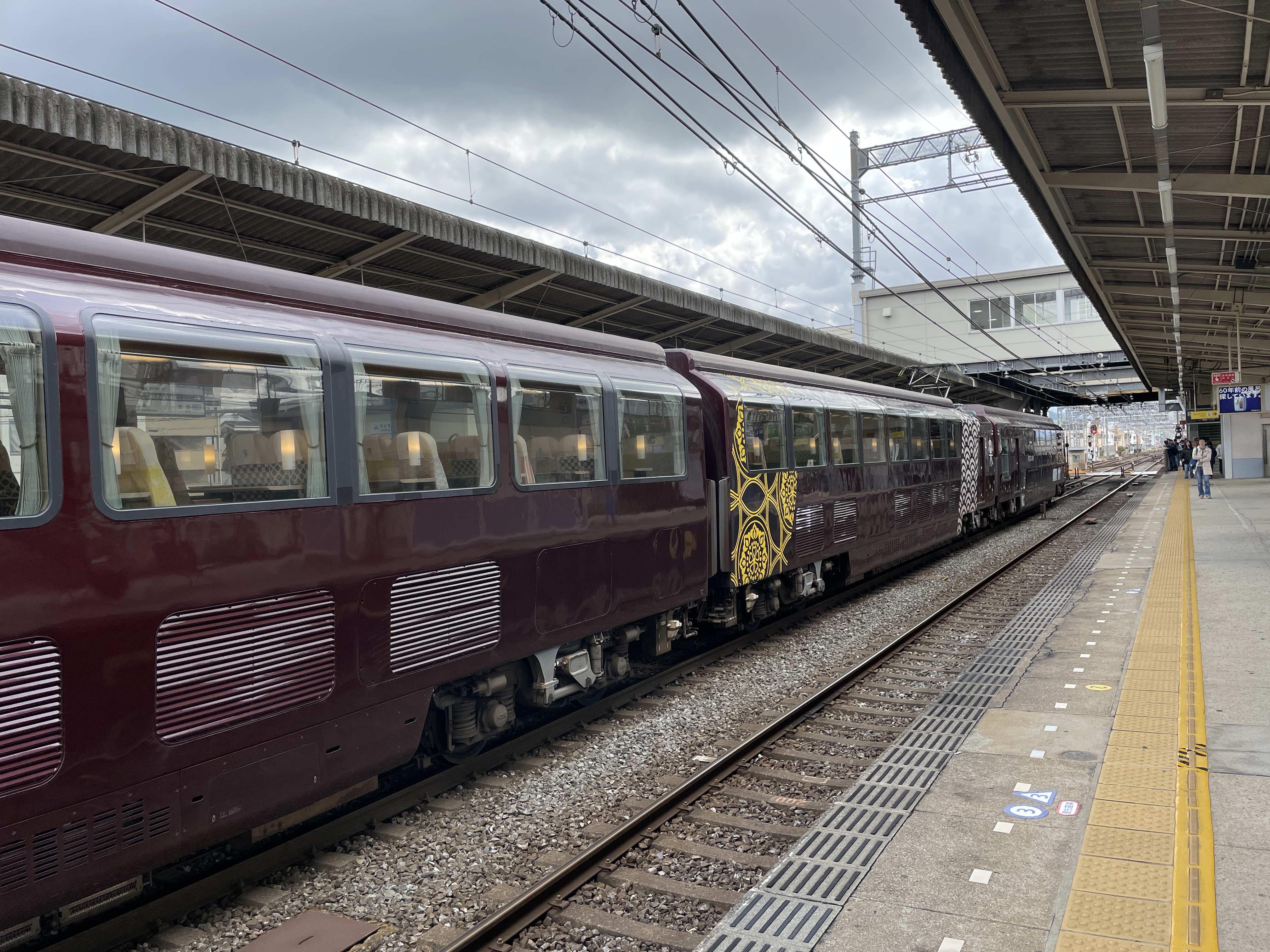 ▼近鉄の団体専用列車「楽」が大晦日から元旦にかけて沿線の寺社を参拝するために、初詣列車として運行されます。