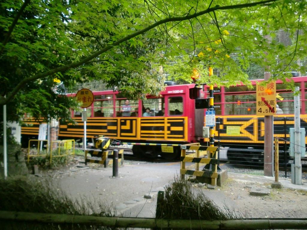 ▼トロッコ列車はトロッコ嵯峨駅を出発してしばらくは山陰本線を走行して、小倉山トンネル手前で新線と別れて旧線へ入ります。