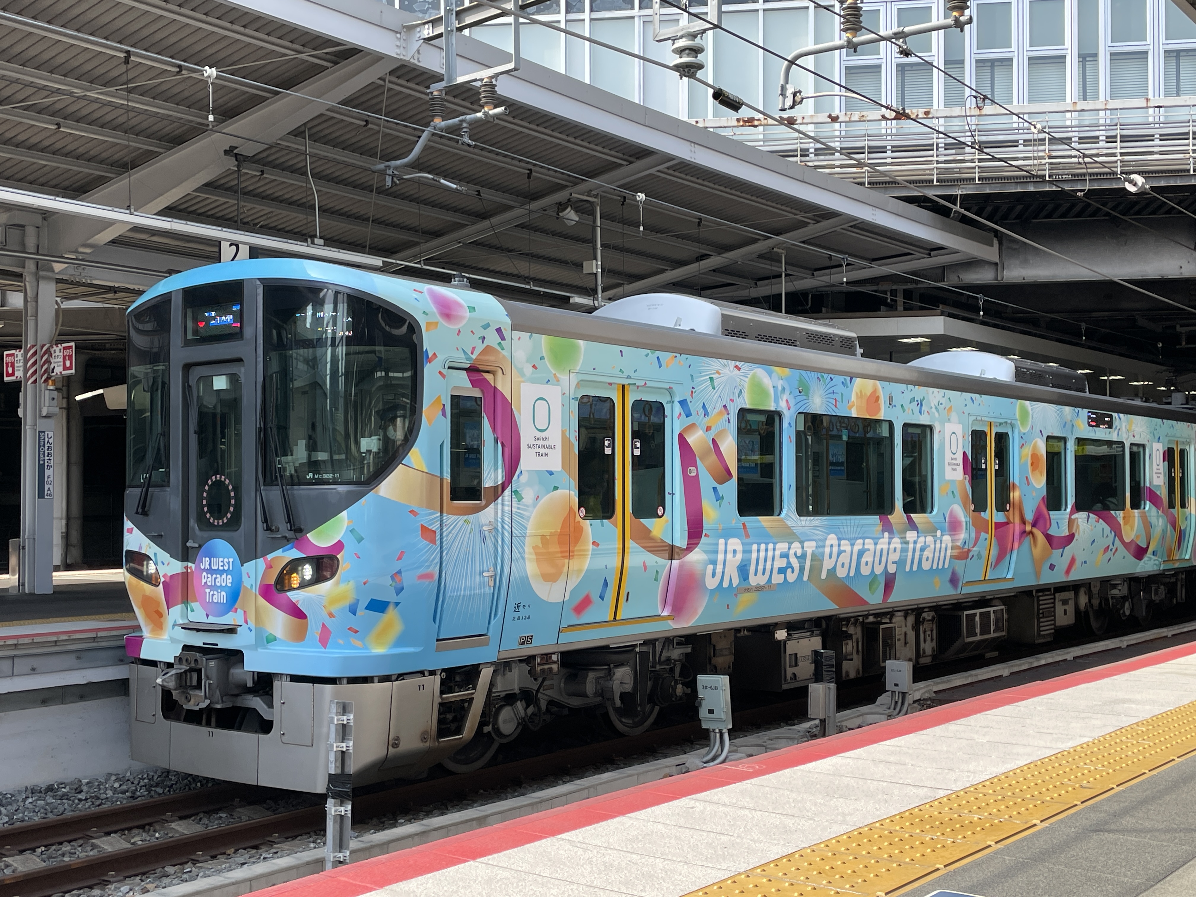 ▼この先頭車両の「JR WEST Parade Train」はデザインコンセプトを表現したラッピングを施しています。