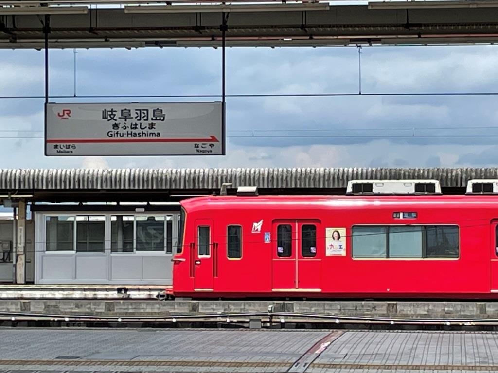 ▼名鉄羽島線は笠松まで、毎時4本の列車が運転されています。