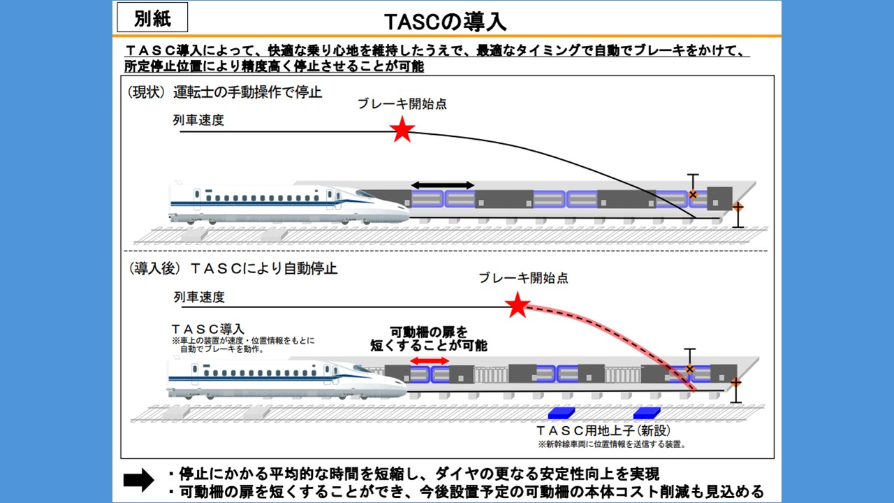 ▼また、停止位置の精度が向上するため、駅ホーム上の可動柵のドアを短くすることができ、今後、同新幹線に設置、取替する際に可動柵のコスト削減効果も見込まれるとしています。