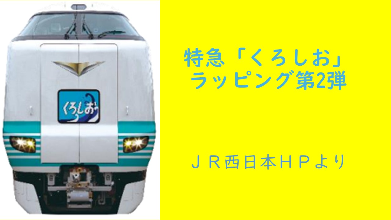 ▼特急「くろしお」 デビュー60周年を記念して運行されているラッピング列車に第2弾が登場します。
