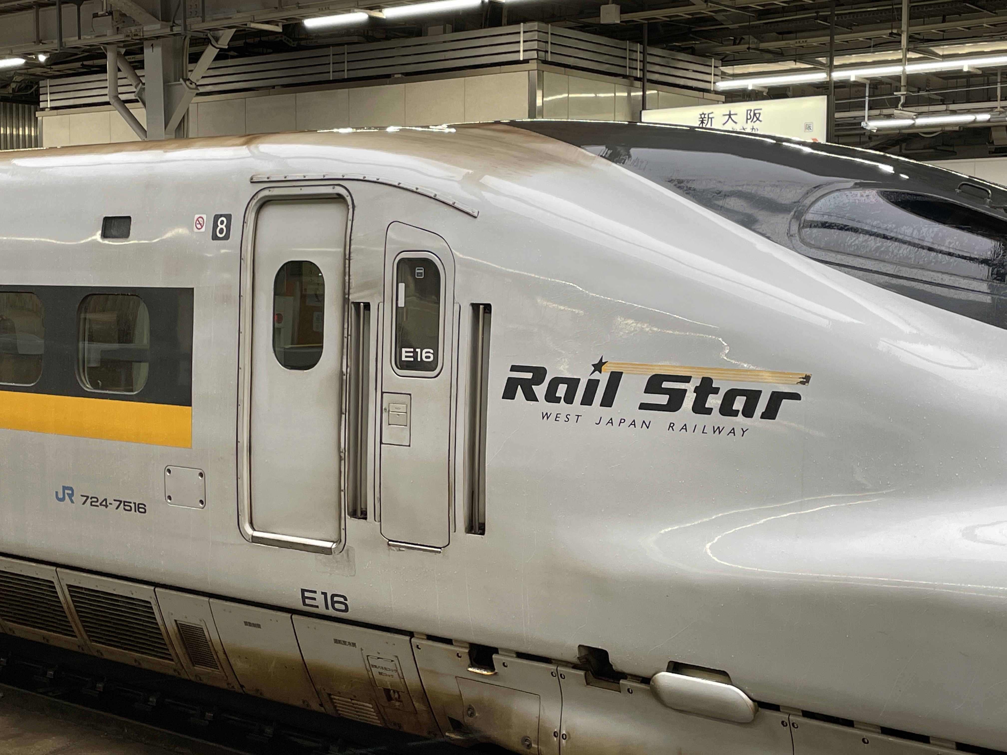 ▼朝の新幹線新大阪駅ホームで、いずれは消え去る運命のレアな車両に出会えることとなりました。(2025.11.12)