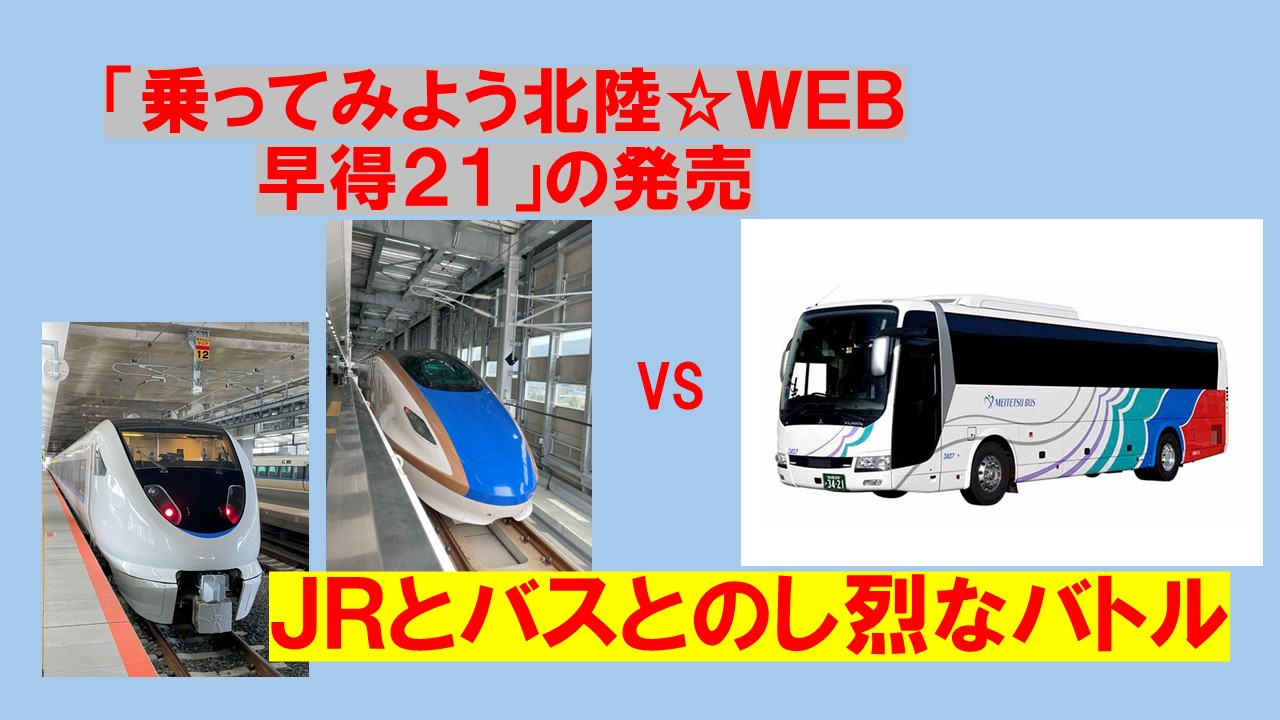 ▼JR東海及びJR西日本は連名で、「乗ってみよう北陸☆WEB早得21」の発売を6月17日にプレスリリースしました。