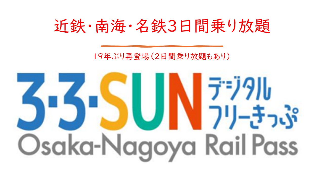 ▼近畿日本鉄道、南海電気鉄道、名古屋鉄道の3社は、2025年4月7日(月)から3社の対象エリアで連続3日間(あるいは2日間)乗り放題になるきっぷ「3・3・SUNフリーきっぷ」を発売すると3月31日に発表しました。