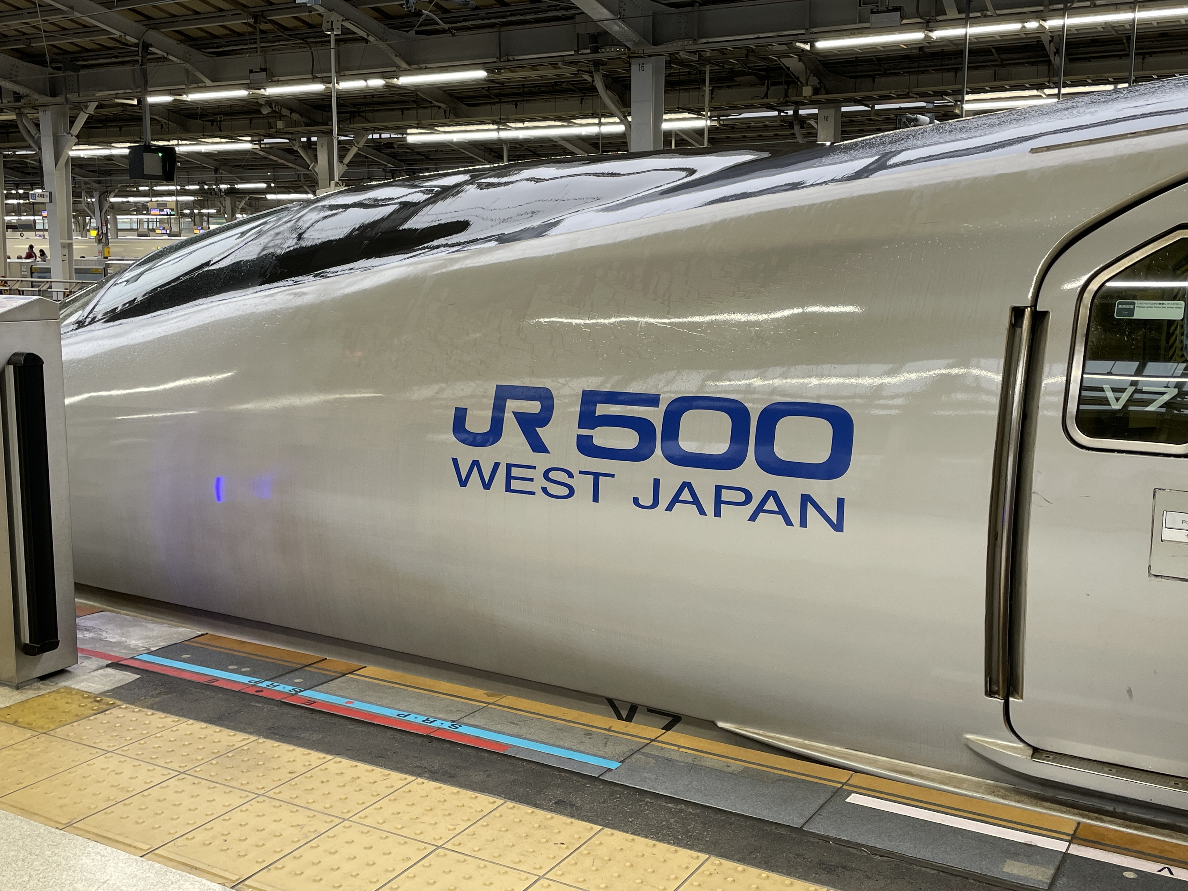 ▼新幹線ホームに上がると、まずは山陽新幹線ホームの20番線に、7時40分発の500系の「こだま」841号博多行が停車していました。
