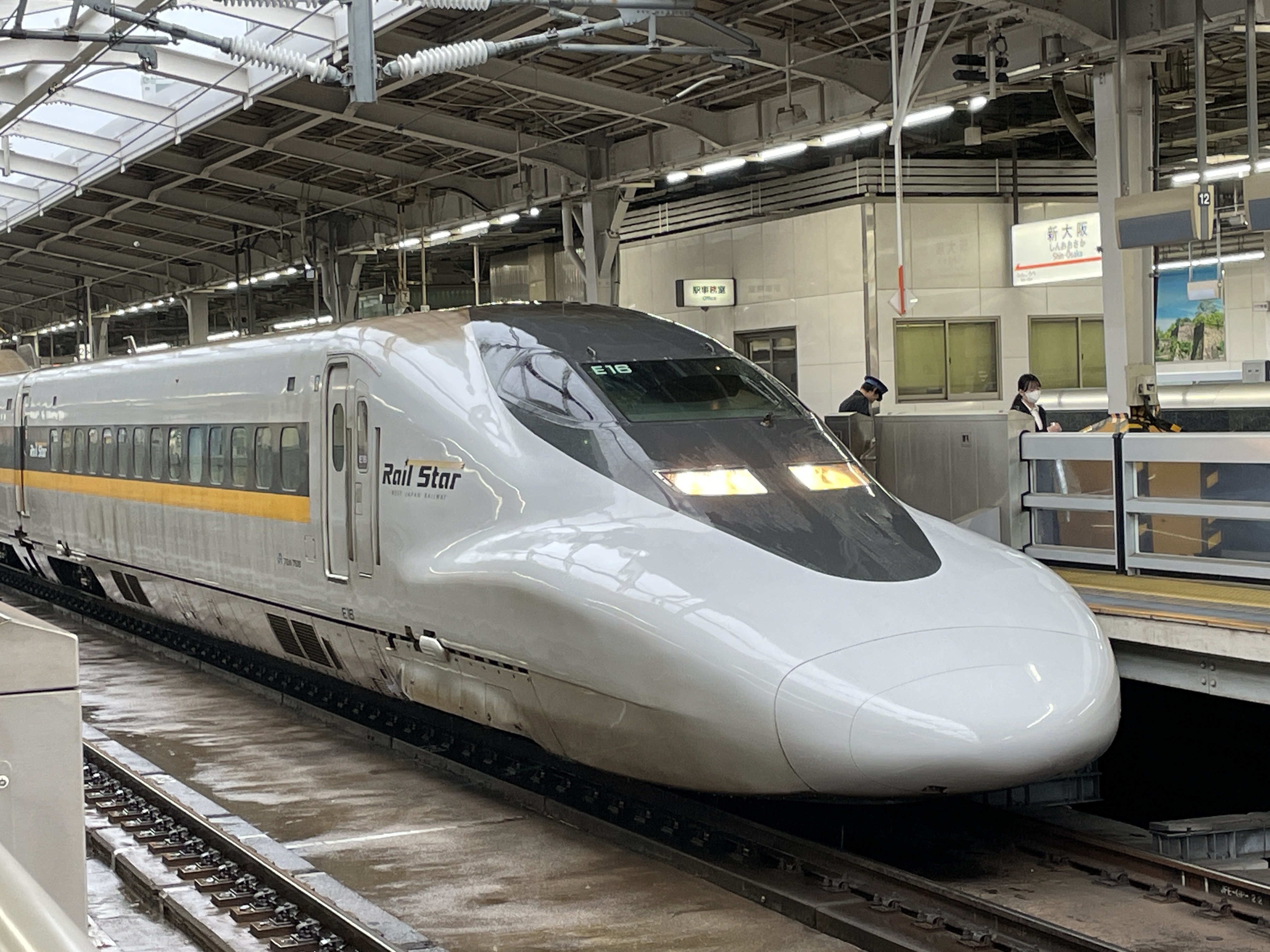 ▼朝の新幹線新大阪駅ホームで、いずれは消え去る運命のレアな車両に出会えることとなりました。(2025.11.12)