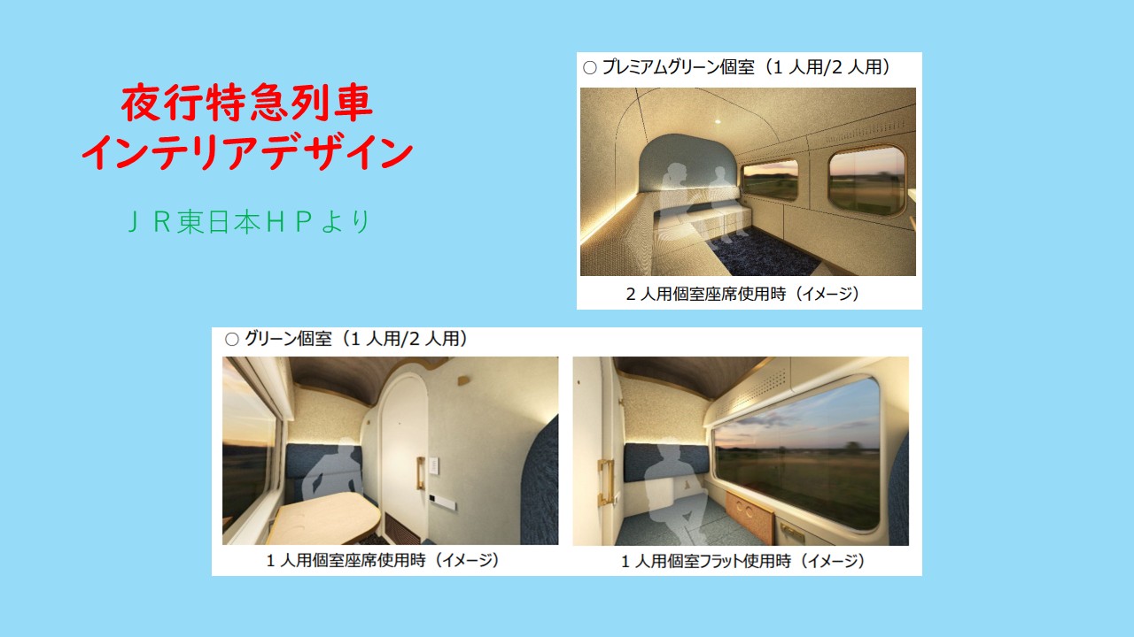 ▼銀河には、普通席、グリーン個室、ノビノビ座席、コンパートメントシート、女性席など多様なニーズに応えようとしていますが、JR東日本の新型特急は、プレミアムグリーンとグリーンの2種類、1人、2人、4人の3種類しか選択肢がありません。ここは、両者の異なる所でしょうか。